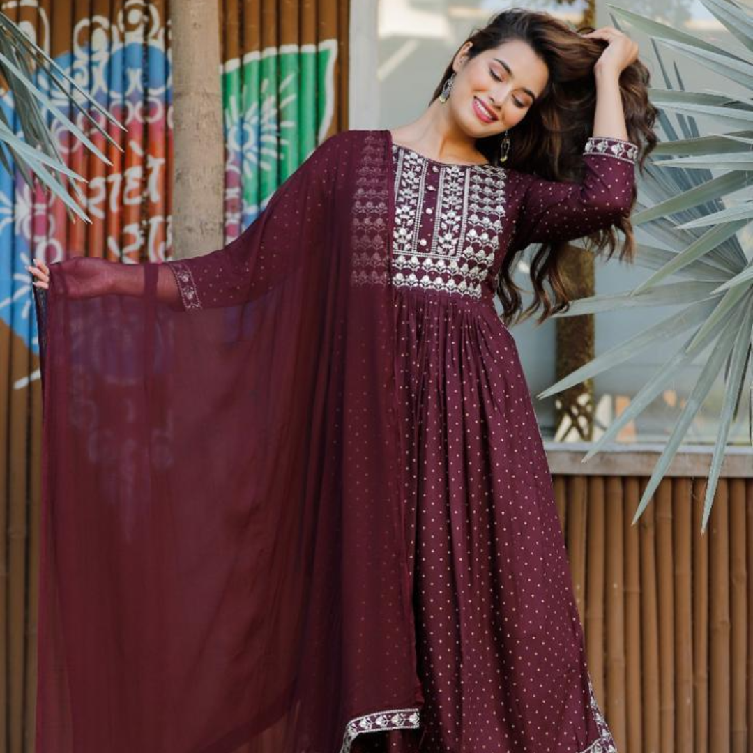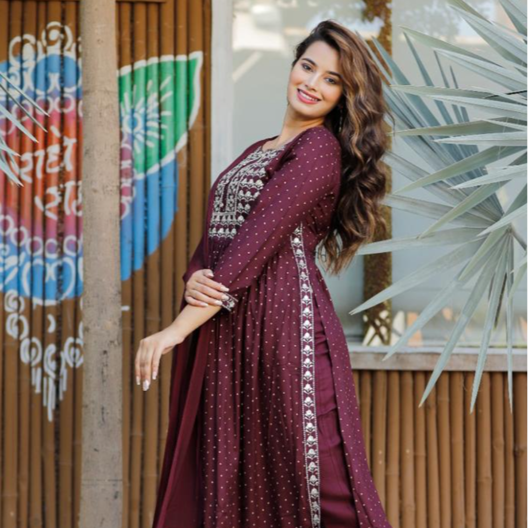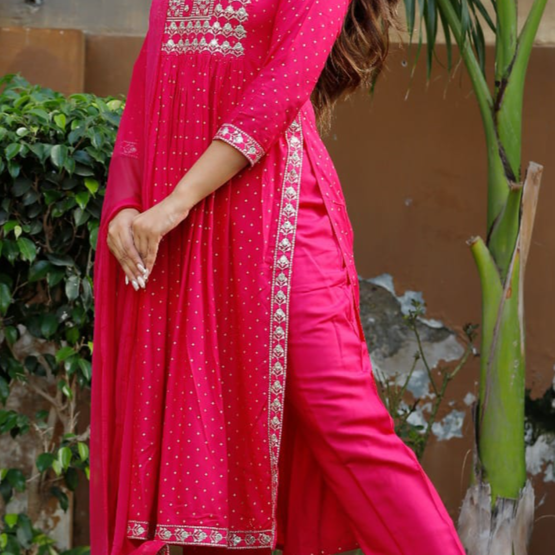 *Beautiful Seqence Zari Computer Embroidered work kurthi pant and chiffon dupatta.